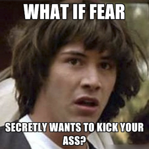 Sometimes you have to fall all the way down to the floor before you can get up and walk again. Fear is well-equipped to knock you on your ass and leave you curled up in a corner screaming for your Mom. You want to avoid it, so you make bad decisions, doing things to sabotage your recovery. When you feel the pain from training you don’t have to face your real fear.