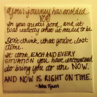 Celebrate small successes and baby steps forward. The trap of injury leaves you feeling you aren’t doing enough, haven’t made enough progress or aren’t busy enough. You are enough and you are doing enough right now. You have made enough progress and you will heal. Remember, the biggest part of your journey is healing your mind, silencing your negative internal voices and controlling your daily attitude choice.
