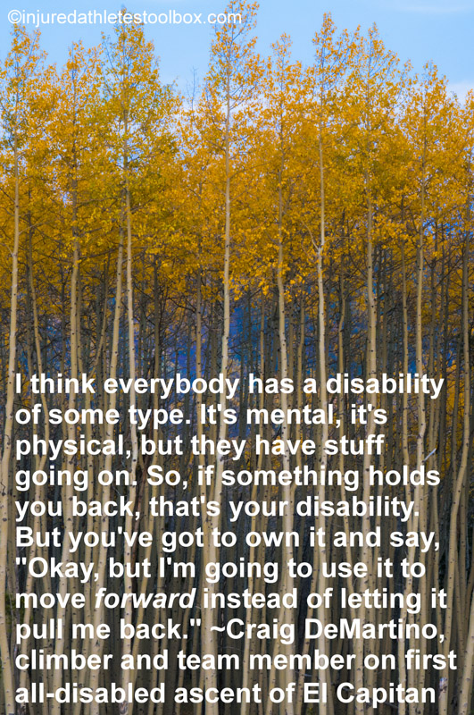 I tell my clients life-changing injury isn’t for sissies. Dreams seemingly fall apart and you’re faced with a litany of unsavory feelings. It’s like the ultimate assault on your psyche, but now you have a well lit path to help you rebuild. Take a leap of faith and see where it leads.
